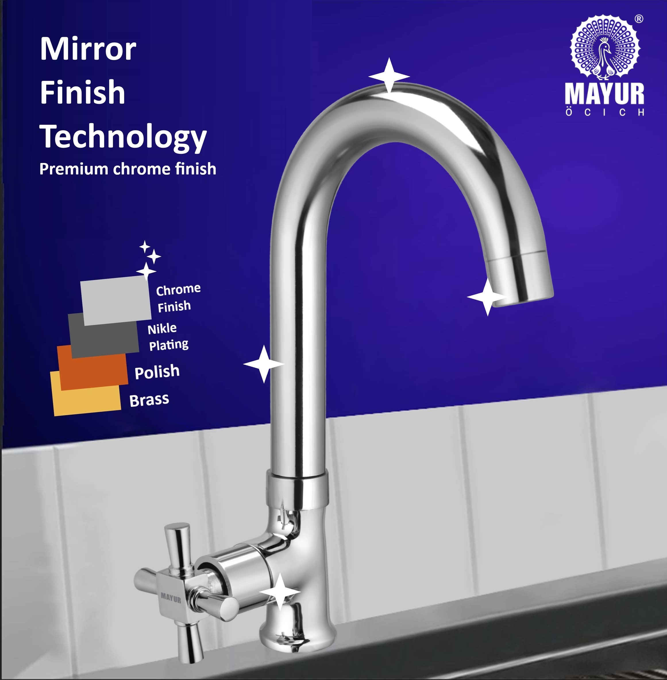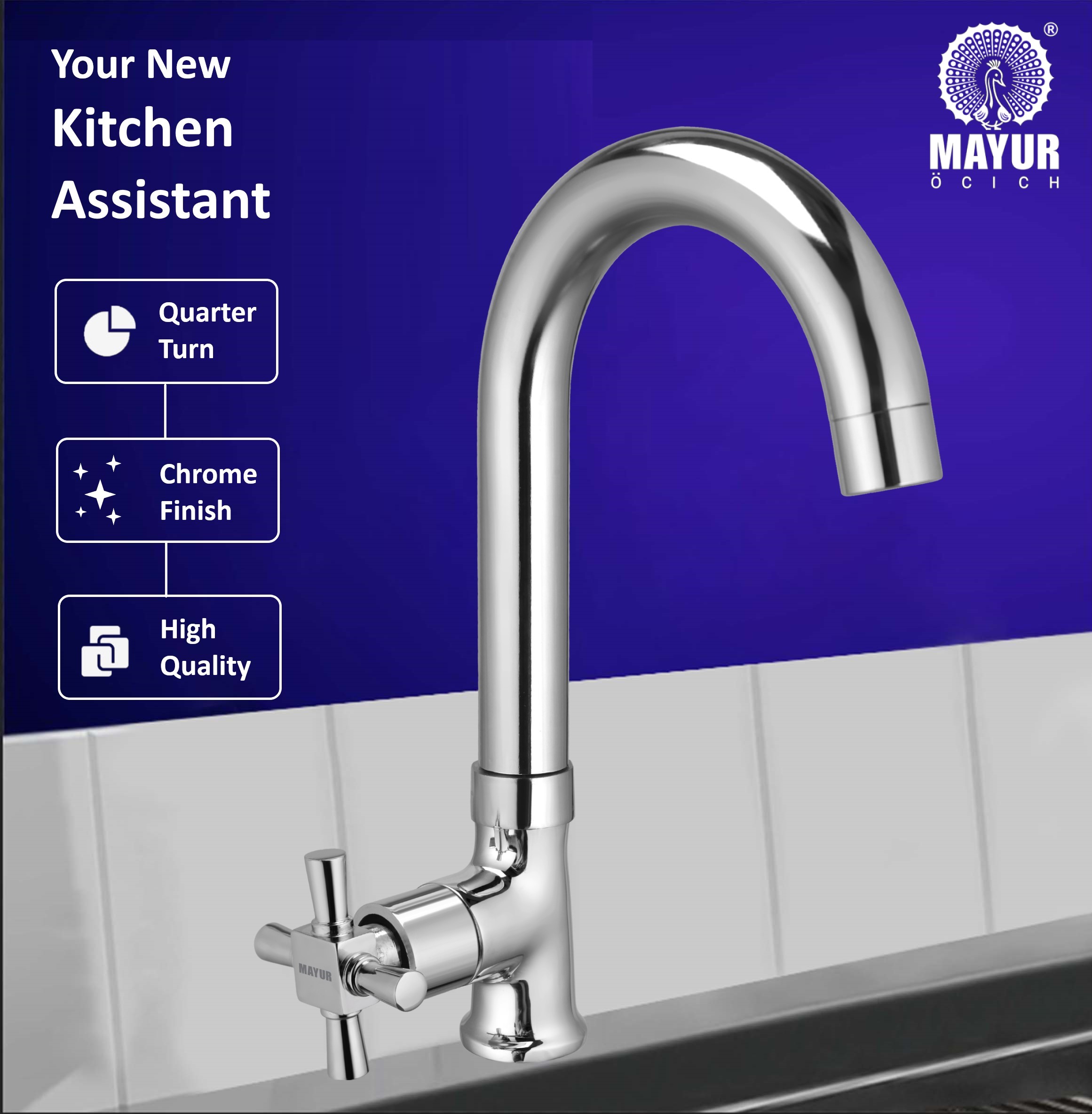 Upgrade Your Kitchen With This Festive Sale With Diwali Offer, Bring Home Mayur Brass Swan Neck Kitchen Sink Tap (MAESTRO) – A Perfect Balance Of Style, Strength, And Functionality. Built With Premium Brass Construction And A Chrome Mirror Finish, This Kitchen Tap Delivers Durability, Corrosion Resistance, And Long-Lasting Shine. The 360-Degree Swivel Spout Makes It Easy To Reach Every Corner Of Your Sink, While The Foam Flow Aerator Provides A High-Flow, Splash-Free Water Stream. Designed With A Quarter-Turn Ceramic Disc Cartridge (Tested For Over 5,00,000 Operations), It Ensures Smooth And Reliable Performance Every Day. Whether You’Re Filling Large Pots, Washing Vegetables, Or Cleaning Dishes, The Mayur Swan Neck Tap Brings Convenience And Elegance To Your Kitchen. Backed By A 10-Year Warranty, This Faucet Is A Reliable Choice That Combines Modern Aesthetics With Trusted Quality.