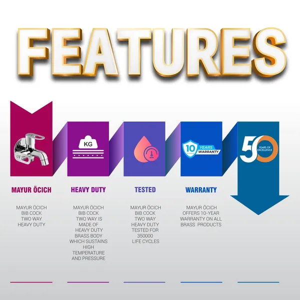 Discover the perfect blend of functionality, strength, and elegance with the MAYUR ÖCICH {MILANO-4204} Brass Two Way Bib Cock with Wall Flange. Designed for modern households and commercial spaces, this premium faucet offers dual outlets in a single fitting, making it an ideal choice for bathrooms, kitchens, utility areas, and outdoor installations where versatility matters. Crafted from 100% solid brass, the {MILANO-4204} guarantees exceptional durability, rust resistance, and a long service life. Unlike ordinary bib cocks, this two-way model allows you to connect two water outlets simultaneously—perfect for pairing a wash basin with a washing machine, a geyser with a shower, or even using one outlet for daily washing and the other for hose connections. Its premium chrome finish not only enhances the visual appeal but also makes it resistant to stains, scratches, and tarnish, ensuring your bathroom or kitchen looks spotless and stylish. The smooth lever handles provide effortless control of water flow, while the wall flange design ensures a seamless, professional finish on installation.