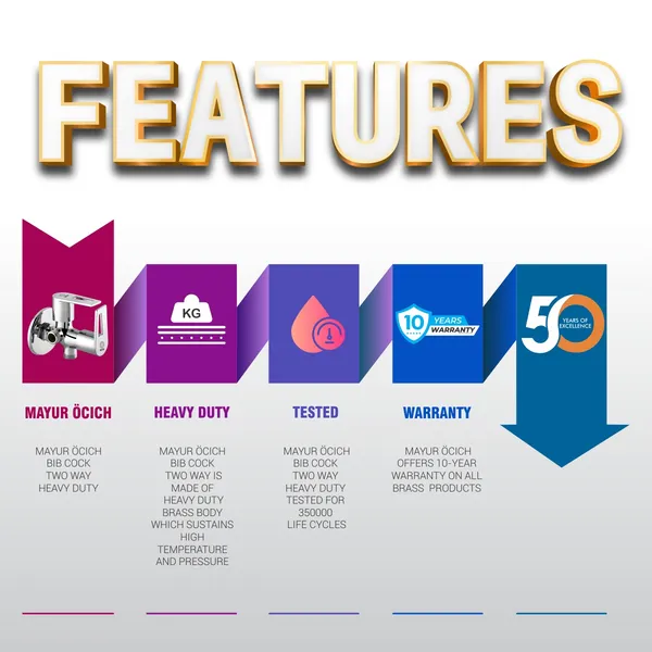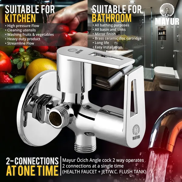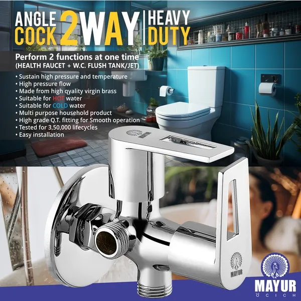 2-In-1 Angle Valve Cock : Consolidates Hot And Cold Water Supply Into A Single Fixture, Offering Convenience And Space-Saving Benefits In Your Bathroom Or Kitchen. Quarter Turn Heavy Fitting : Features A Robust Quarter-Turn Mechanism For Smooth Operation And Durability, Ensuring Reliable Performance Over Time. Brass Construction : Made From High-Quality Brass Material, Providing Strength And Resistance To Corrosion For Long-Lasting Use In Humid Environments. Wall Flange Included : Comes With A Wall Flange For Easy And Secure Installation, Providing A Finished Look And Concealing Unsightly Pipe Connections. Space-Saving Design : Streamlines Plumbing Setup By Combining Two Valves Into One, Optimizing Space Under Sinks Or Behind Appliances. Versatile Application : Suitable For Pipe Connections In Bathrooms, Kitchens, Or Any Area Where A Reliable And Stylish Angle Valve Is Needed. The Molding, Casting, Grinding, Polishing, Electroplating And Even The Testing And Assembly Is Done Very Carefully. Mayur Uses Triple Layer Plating Technology To Give The Most Shining And Durable Finish To Its Products. The Surface Finish Complies With The Most Stringent Test Requirements Across The Globe.