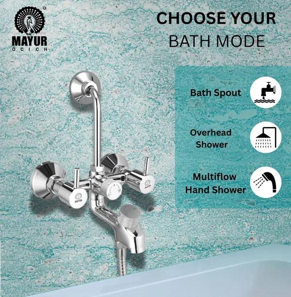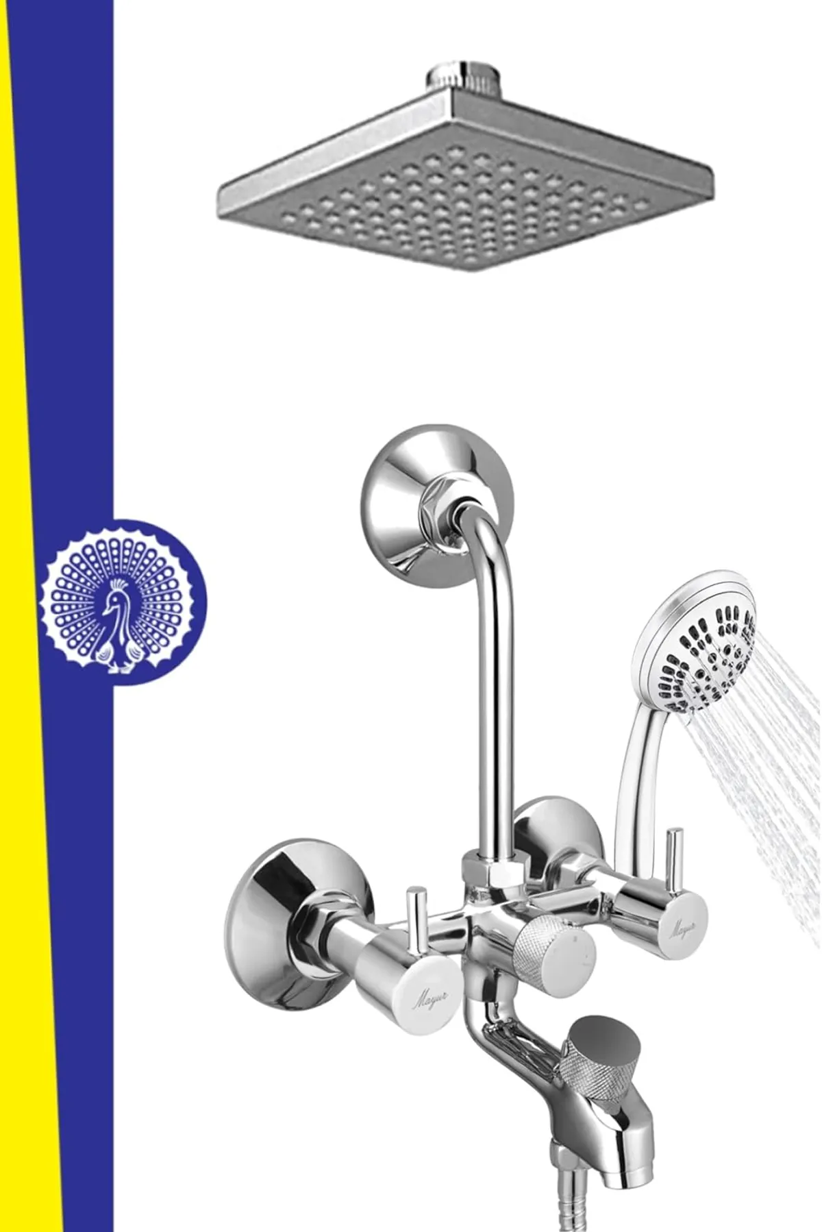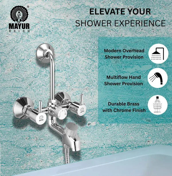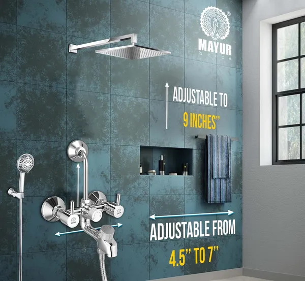 Mayur Dual Handle Wall-Mounted Premium Diverter Faucet With 4 Inch Overhead Shower And 5-Function Hand Shower, A Faucet Collection Characterized By Its Geometric Cylindrical Form, That Adds A Simple Elegance To Your Bathroom. Shower Tap Set For Bathroom, Wall Mixture, Wall Mixer For Bathroom 3 In 1, Wall Mixer For Bathroom, Tap Bathroom, Shower Mixer, Mixture Bathroom, Mixer Tap For Bathroom, Bathroom Mixer, Taps For Bathroom, Bathroom Mixer 3 In 1 With Shower, Wall Mixture 3 In 1 For Bathroom, 3 In 1 Wall Mixer Bathroom, Bathroom Tap, Tap Set For Bathroom, Water Taps For Bathroom. Premium Quality: High Quality Material Construction And Finish For Premium Look And Feel. Triple Protect Technology: Which Is So Advanced That This Tap Will Now Last A Lifetime. Function- Mixes Hot & Cold Water (Silky Smooth Operation) Suitable For All Kinds Of Bathroom (Easy To Install) (Wall Mounted). Aerator- Neoperl Foam Flow Technology (High Flow) (Easily Removable To Clean Any Debris). Seamless Design : Modern Detailing Hidden Aerator With No Escutcheon Gives Clean Lines Which Reduces Visual Clutter. Strong Brass Construction :Single Body Brass Construction. Why Choose Mayur? We Are Manufacturing Bathroom Fittings For The Past 47 Years Now. Mayur Products Are Inspired By Need & Designed With Passion. Which Is Why Each Series In Mayur’S Catalogue Is Different From The Conventional Industry Designs.Mayur Will Give Your Home, Bathroom & Kitchen A Fresh Look. Every Product Is Hand Built In Our Facility And Goes Through Rigorous Testing At Every Stage Before Being Dispatched. We Have So Much Faith In Our Products That We Offer Best In The Industry Warranty Of 10 Years.