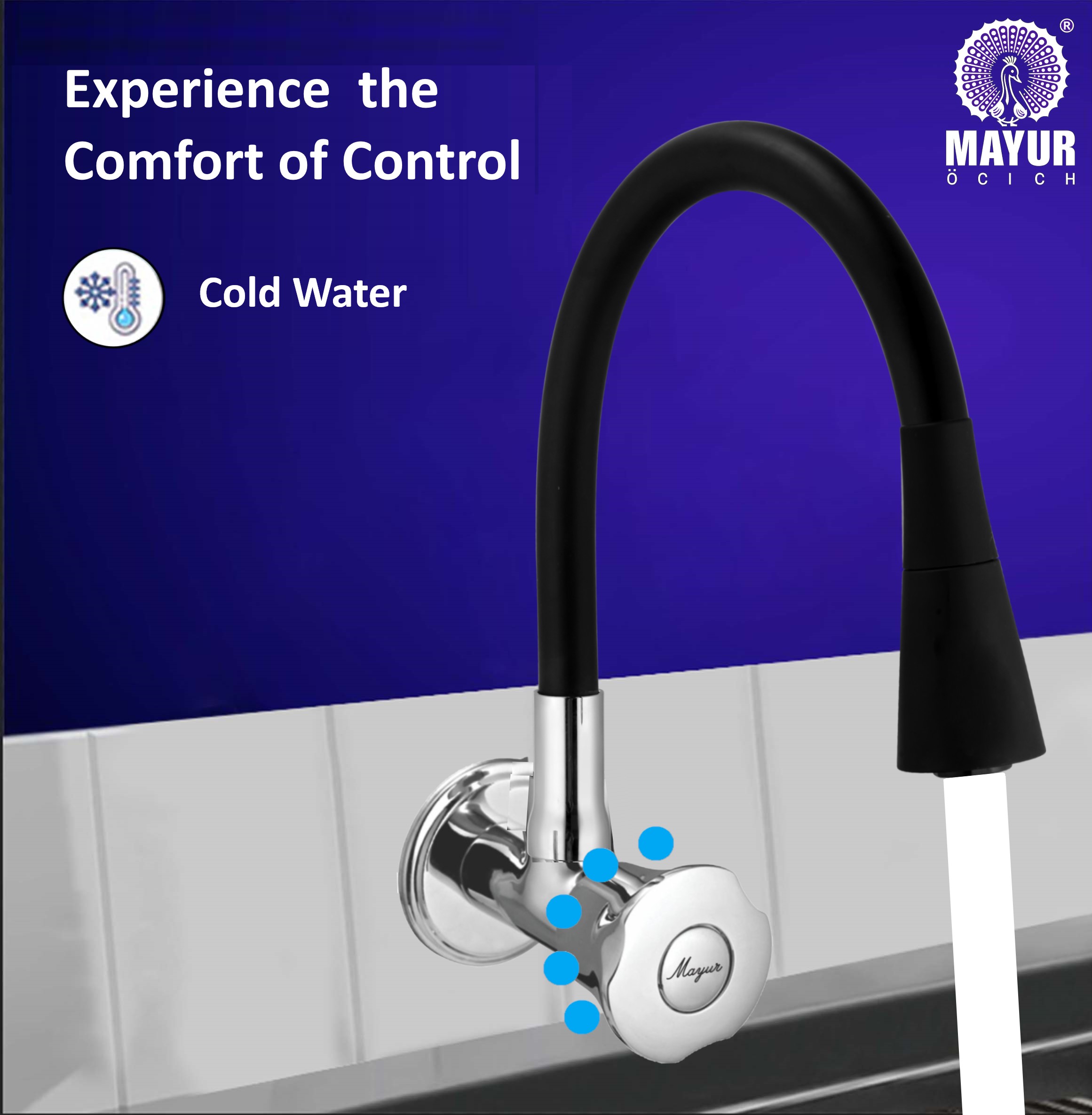 MAYUR ÖCICH Brass Kitchen Tap For Sink | Flexible Swivel Spout | Chrome & Matte Black | Cold Water Sink Cock | Premium Brass + Silicone | 10 Years Warranty (ORNIX-3501-Sf)