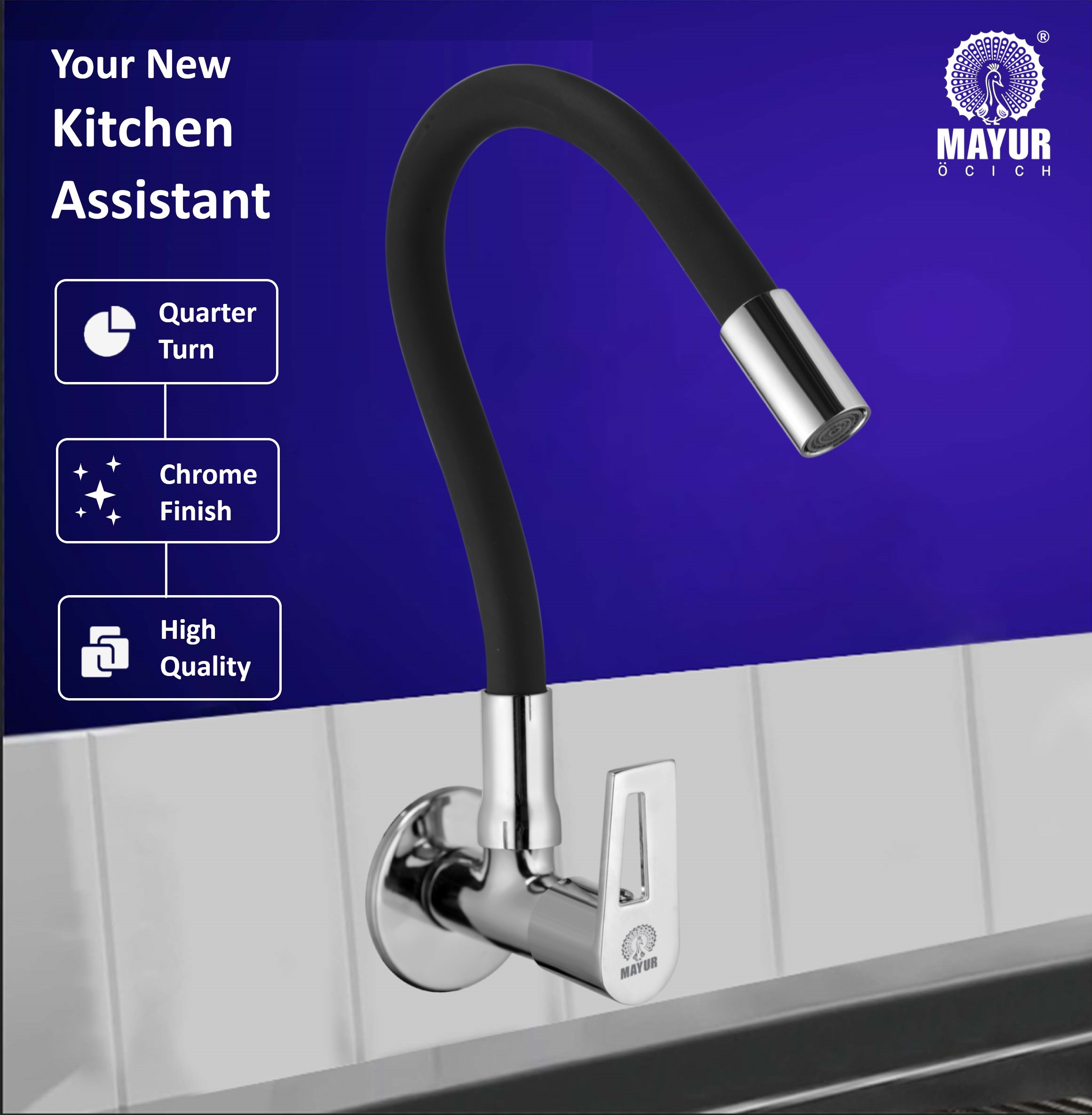 Upgrade Your Kitchen With This Festive Sale With Diwali Offer, Bring Home Mayur (ARIA-8501-Sf) Kitchen Tap, Designed To Deliver Durability, Style, And Practical Functionality. Expertly Crafted With A Premium Brass Body And A Silicone Spout, This Tap Is Built To Withstand Daily Use While Maintaining Its Sleek Look. The Flexible Swivel Spout Rotates A Full 360 Degrees, Offering Unmatched Maneuverability For Cleaning, Rinsing, And Filling Large Pots Or Pans With Ease. The Outer Silicone Coating Makes The Spout Soft, Bendable, And Easy To Adjust In Any Direction, Giving You Complete Control Over Water Flow In Your Kitchen. Featuring A Brass Quarter-Turn Ceramic Disc Cartridge, This Sink Tap Provides Silky-Smooth Cold Water Operation While Ensuring Precision And Leak-Free Performance Tested For Over 500,000 Uses. With A Flow Rate Of 17.28 Lpm At 3 Bar, It Is Engineered For Efficiency Without Compromising Convenience. The Dual-Finish Design Combines Mirror Technology Chrome Plating With A Modern Matte Black Silicone Spout, Making It A Perfect Fit For Both Contemporary And Classic Kitchen Interiors. The Plating Resists Tarnishing And Corrosion, Even In High-Moisture Environments, Keeping Your Kitchen Looking Elegant For Years To Come. Mayur Has Been A Trusted Name In Bathroom And Kitchen Fittings For Over 50 Years, Known For Delivering Products That Combine Style With Long-Lasting Performance. Every Product Undergoes Rigorous Testing To Ensure Reliability And Customer Satisfaction.