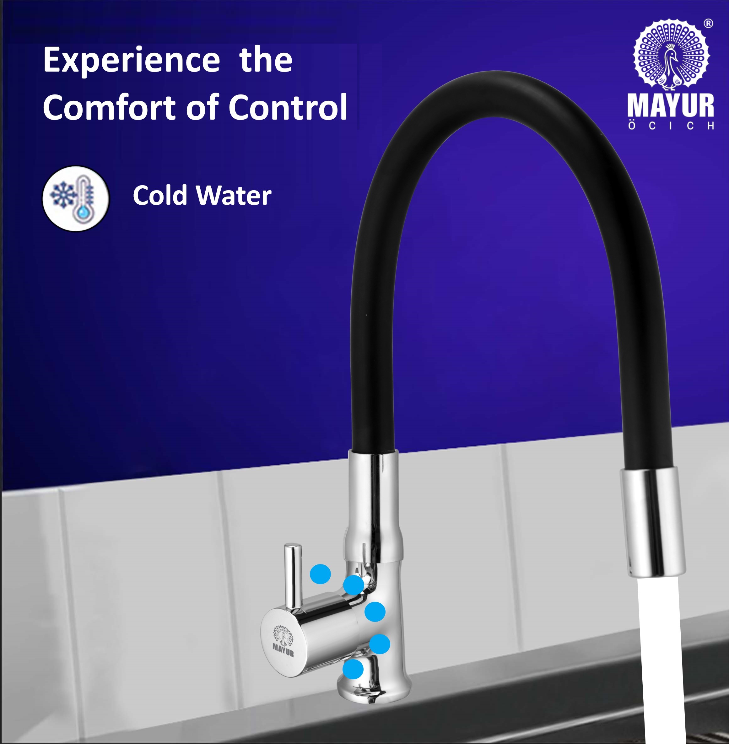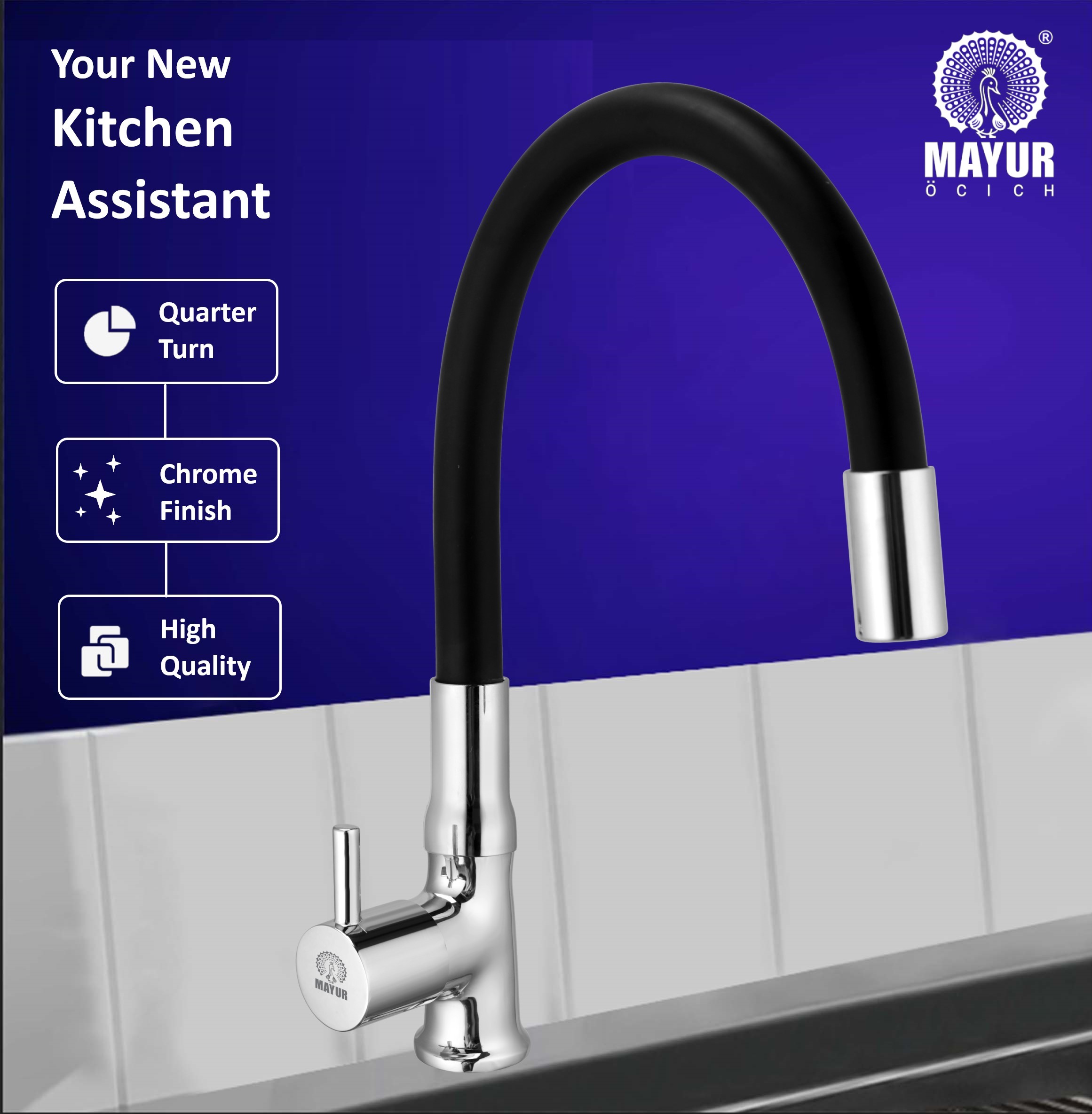 Upgrade Your Kitchen With This Festive Sale With Diwali Offer, Bring Home Mayur Brass Swan Neck Kitchen Sink Tap (FLARO) – A Perfect Blend Of Premium Craftsmanship, Flexible Functionality, And Modern Elegance. Made From Solid Brass With Chrome & Matte Black Finish, This Faucet Is Built To Last. The Flexible Silicone Spout Bends, Twists, And Rotates With Ease, Giving You Full Coverage Of Your Sink. Its 360° Swivel Design Makes It Ideal For Washing Large Utensils, Filling Pots, And Everyday Cleaning Tasks. The Brass Quarter-Turn Ceramic Cartridge Delivers Silky Smooth Operation And Precise Control, Tested For Over 5,00,000 Cycles To Guarantee Durability. With Mirror Technology Chrome Plating, The Tap Retains Its Shine And Resists Tarnishing, Even In High-Moisture Conditions. Trusted By Homeowners For Over Four Decades, Mayur Combines Engineering Precision With Stylish Design. Backed By A 10-Year Warranty, The Flare Sink Tap Ensures Long-Lasting Performance And Peace Of Mind.