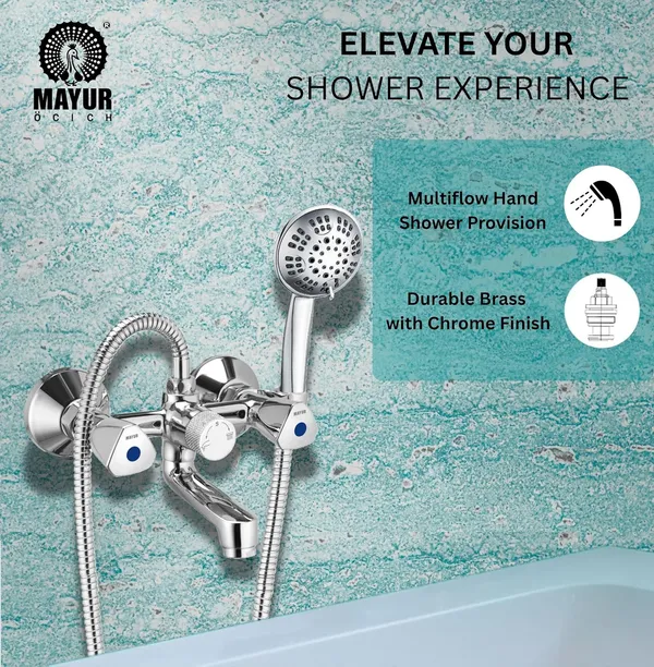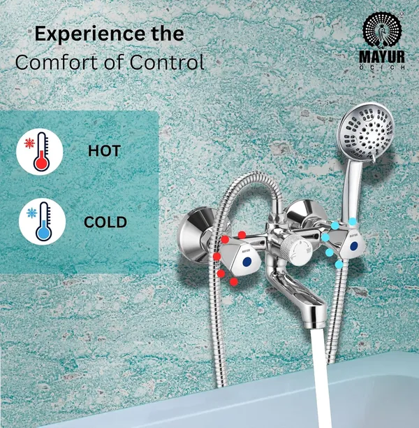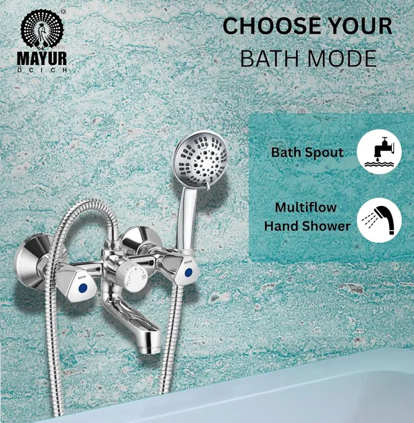 Be the first to review “MAYUR ÖCICH Brass Wall Mixer Tap For Bathroom With 5-Function Hand Shower 1.25M SS Hose & Hook | Chrome Finish | Hot & Cold Water Mixer | Wall Mounted | 10-Year Warranty”