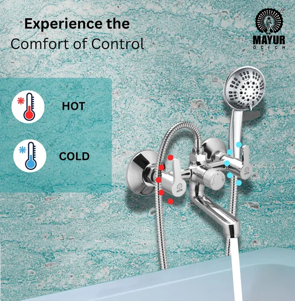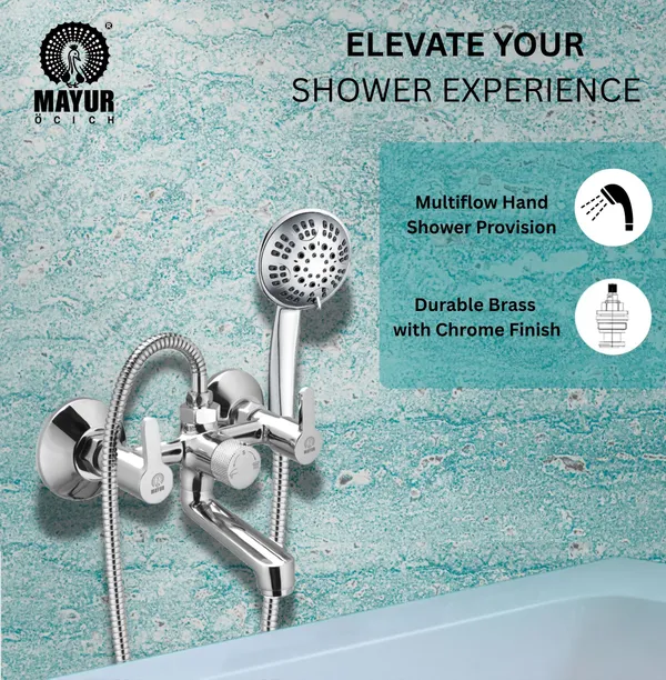 Be the first to review “MAYUR ÖCICH Brass Wall Mixer Tap For Bathroom With 5-Function Hand Shower, 1.5M Ss Hose & Hook (Fusion) | Chrome Finish Hot & Cold Water Mixer, Wall Mounted, 10-Year Warranty” Cancel reply