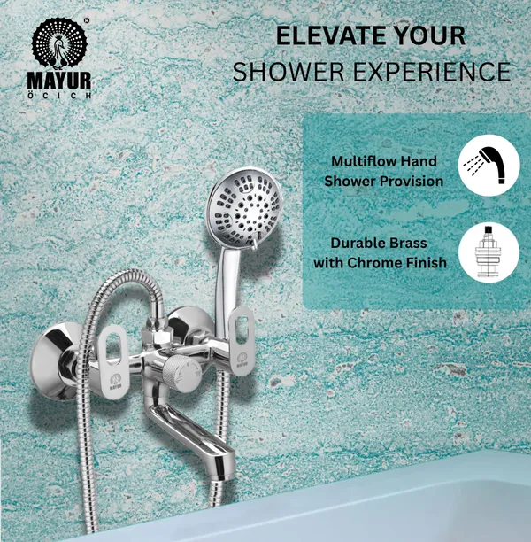 Be the first to review “MAYUR ÖCICH Brass Wall Mixer Tap For Bathroom With 5-Function Hand Shower, 1.5M Ss Hose & Hook (MILANO) | Chrome Finish Hot & Cold Water Mixer, Wall Mounted, 10-Year Warranty” Cancel reply