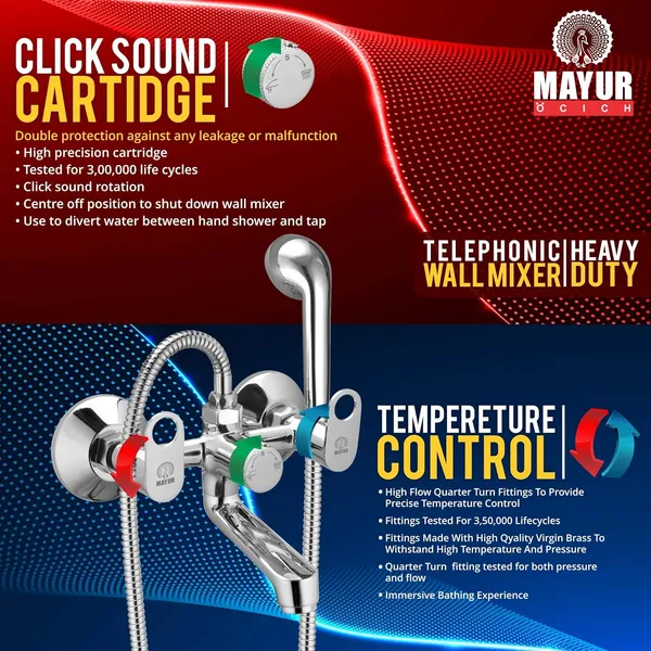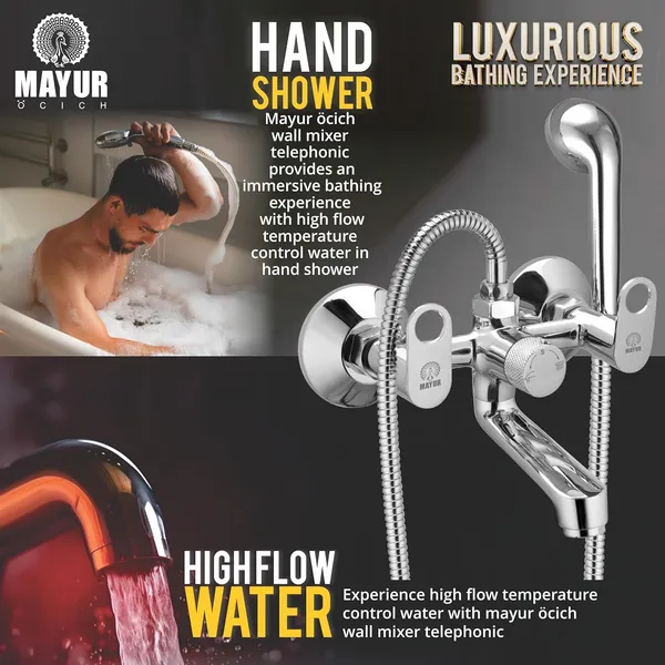Be the first to review “MAYUR ÖCICH Brass Wall Mixer Tap For Bathroom With 5-Function Hand Shower, 1.5M Ss Hose & Hook (ORNIX) | Chrome Finish Hot & Cold Water Mixer, Wall Mounted, 10-Year Warranty”