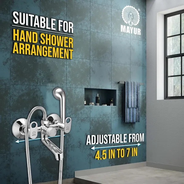 Elevate your bathroom with this versatile wall mixer featuring a 3-mode selector (Spout, Off, Shower) for tailored water flow. Designed with double water leakage protection, it ensures durability and reliability. The set includes a multi-flow hand shower, a 1.25-meter flexible hose, and a hook for custom overhead-style placement, making it ideal for diverse Indian bathroom setups.