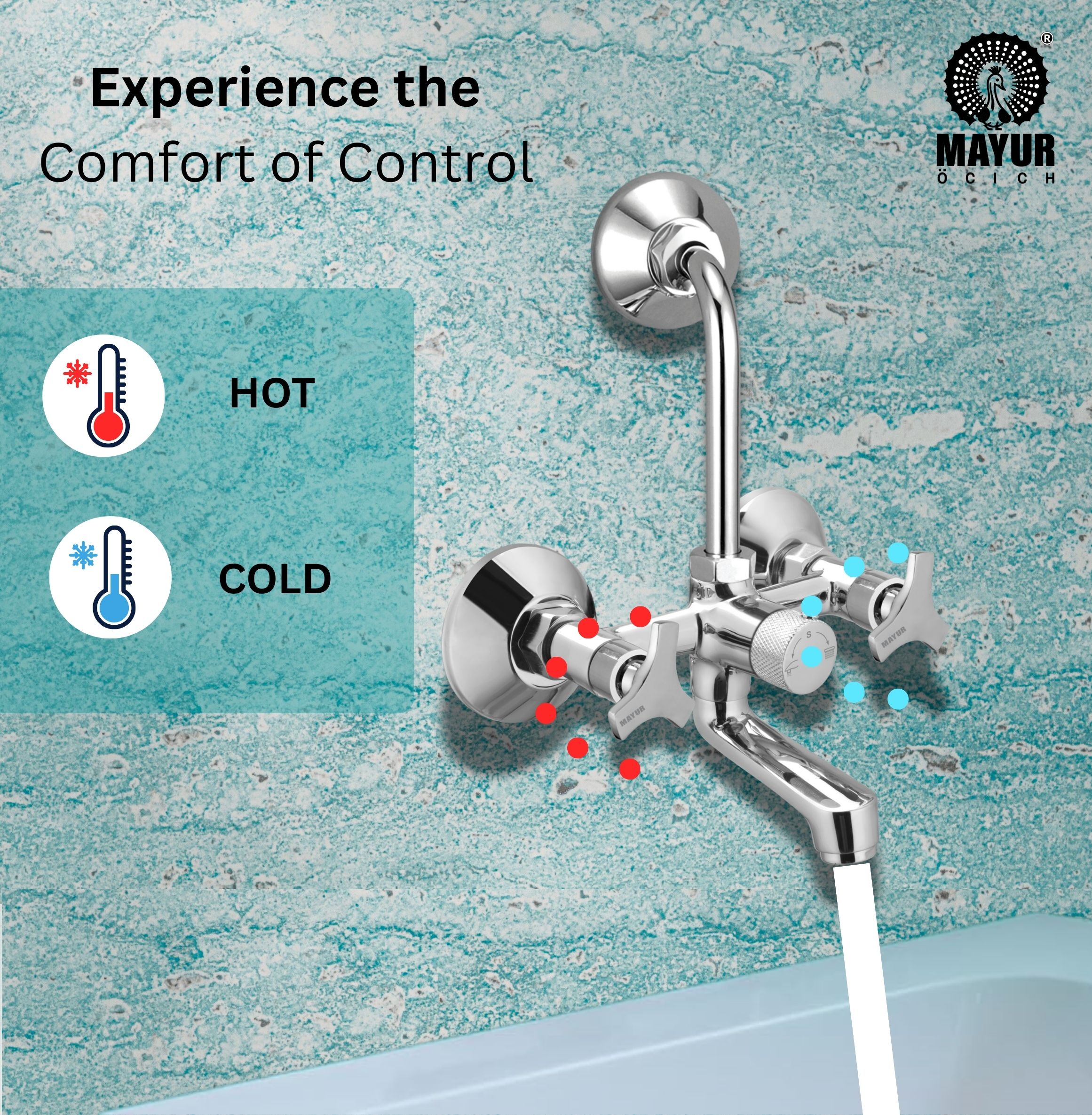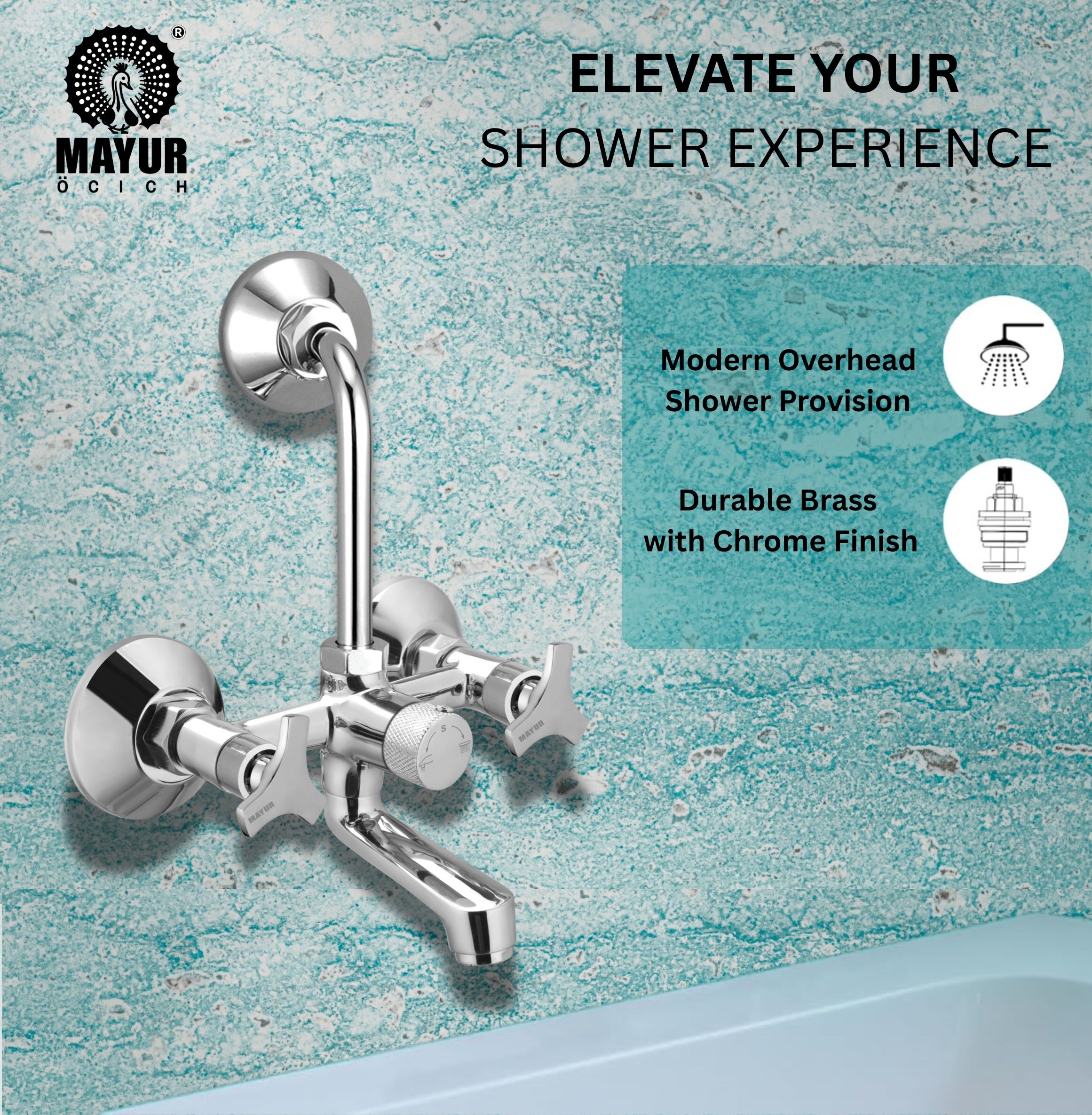 MAYUR ÖCICH Brass Wall Mixer Tap For Bathroom With Overhead Shower Arrangement | Chrome Finish, Hot & Cold Water Mixer, 10-Year Warranty