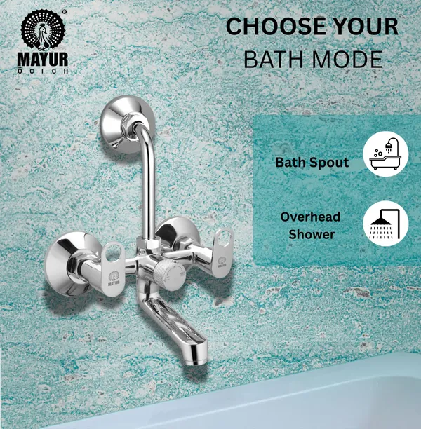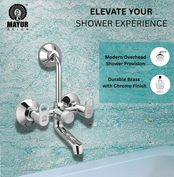 MAYUR ÖCICH Brass Wall Mixer Tap For Bathroom With Overhead Shower Arrangement | Chrome Finish, Hot & Cold Water Mixer, 10-Year Warranty