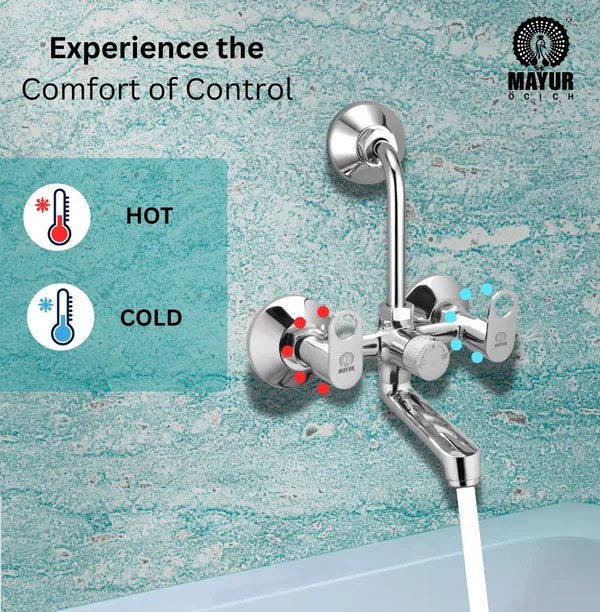 Bring Home MAYUR ÖCICH Brass Wall Mixer Tap with Overhead Shower Arrangement (ORNIX) – where German engineering meets Indian craftsmanship. Designed for durability and elegance, this mixer tap is crafted from premium brass with a mirror-finish chrome plating that resists tarnish and maintains its shine. The dual-handle design ensures smooth control of hot and cold water, while the center-off technology provides double security against leakage. The click sound diversion system adds reliability when switching between spout and shower. With its foam flow aerator for a high-flow splash-free stream, brass quarter-turn ceramic cartridge (tested for 5,00,000 operations), and effortless installation, this wall mixer is the ideal choice for modern bathrooms.